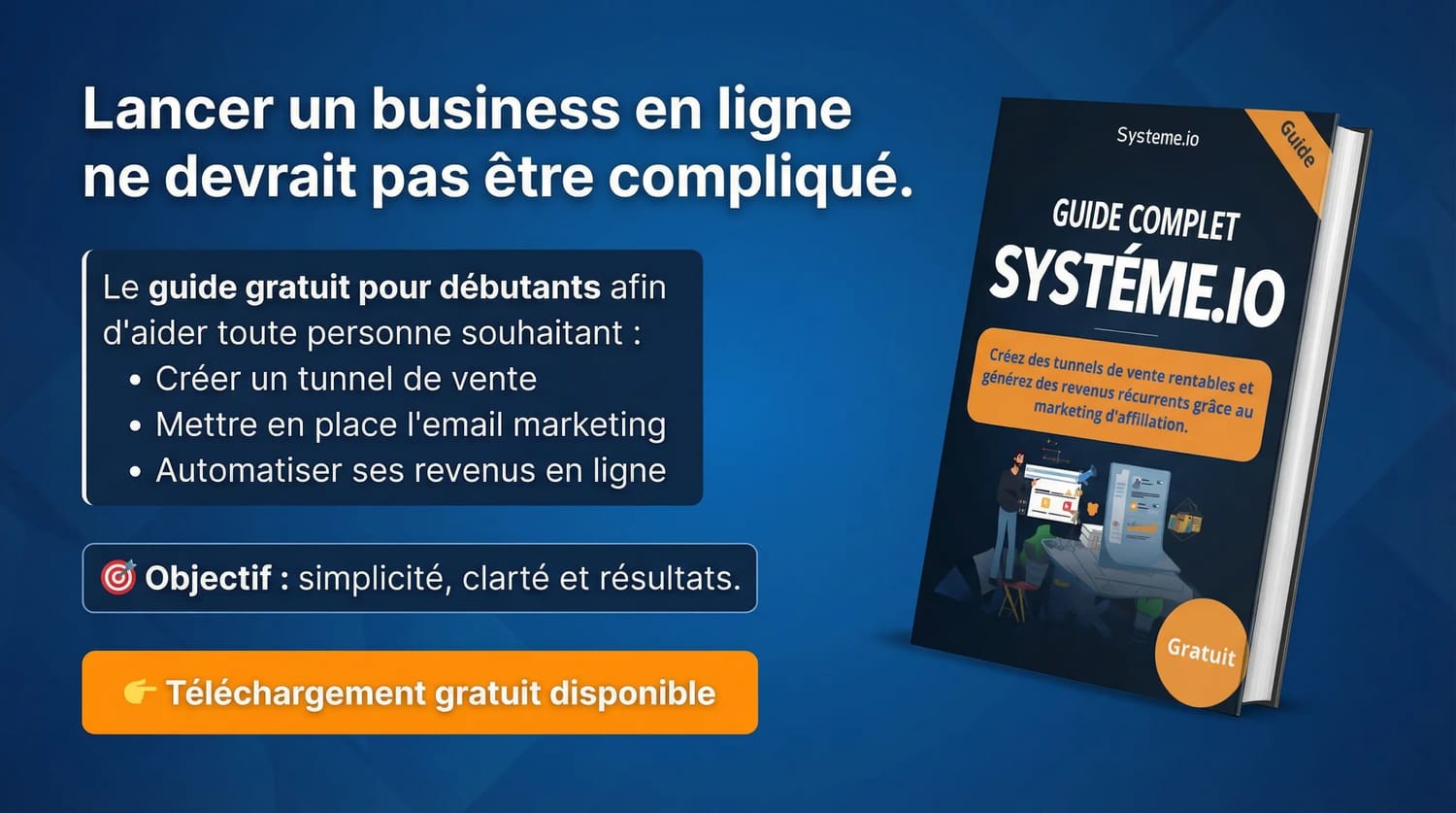 Affiliation, tunnels de vente, IA et email marketing — 100% actionnable.